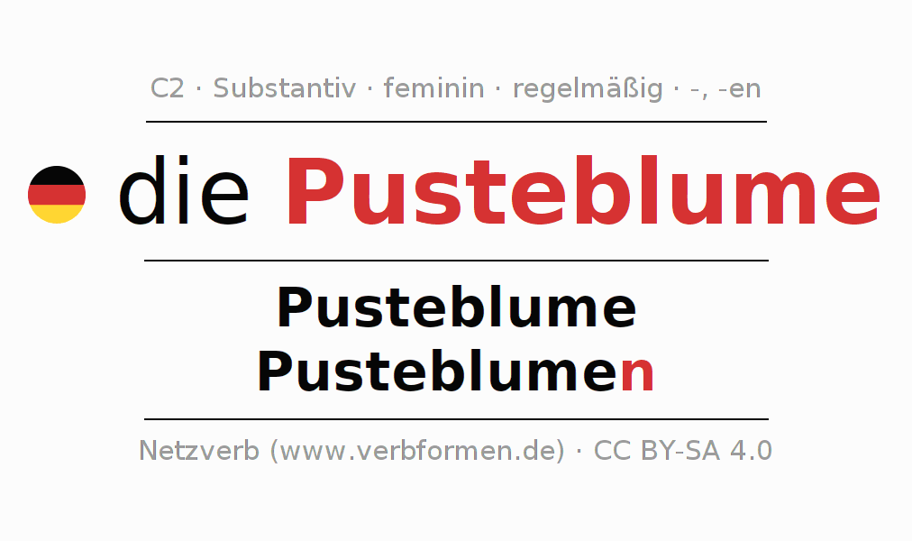 - Singular: die Pusteblume, der Pusteblume, der Pusteblume, die Pusteblume