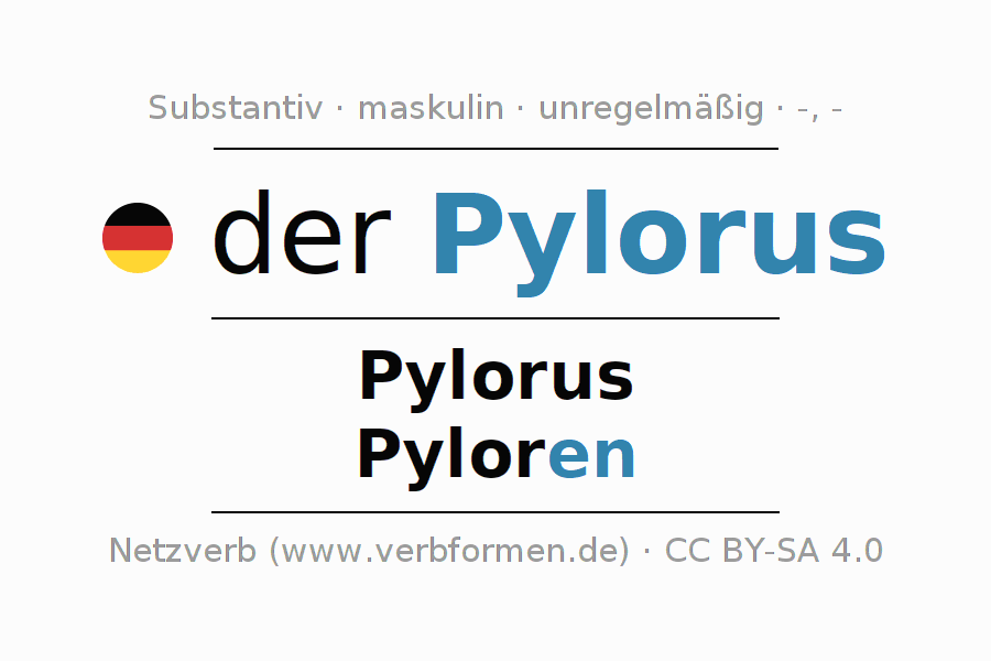 - Singular: der Pylorus, des Pylorus, dem Pylorus, den Pylorus