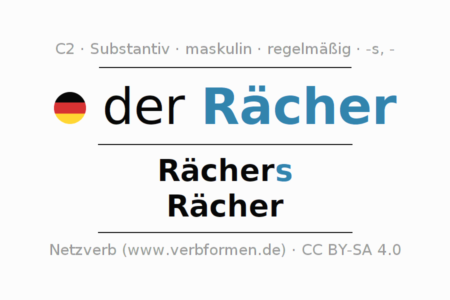 - Plural: die Rächer, der Rächer, den Rächern, die Rächer