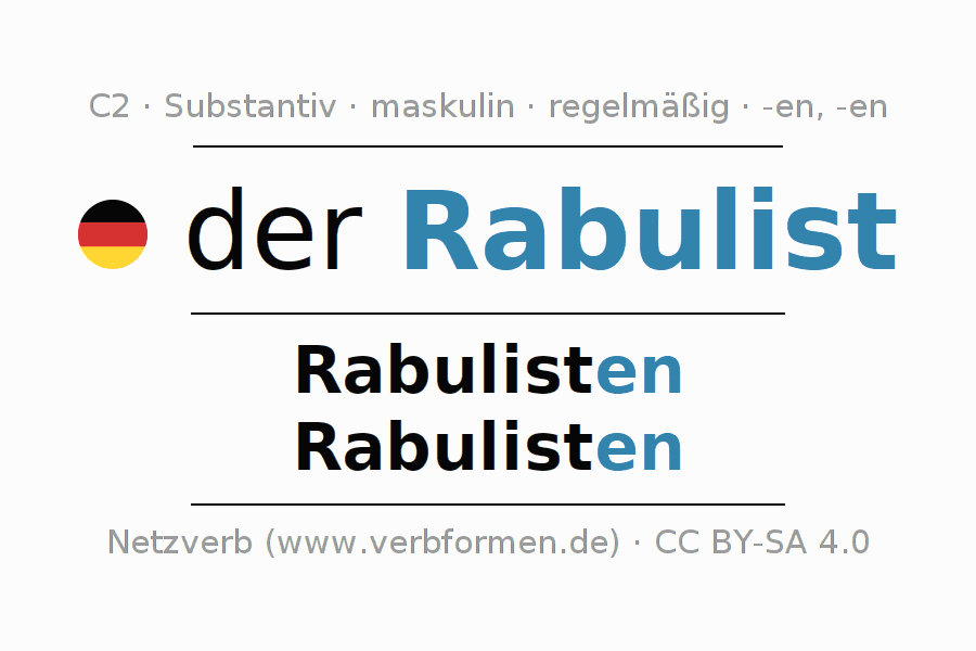 - Singular: der Rabulist, des Rabulisten, dem Rabulisten, den Rabulisten