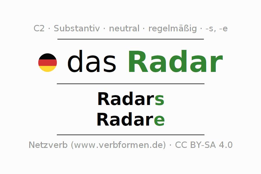 - Singular: das Radar, des Radars, dem Radar, das Radar