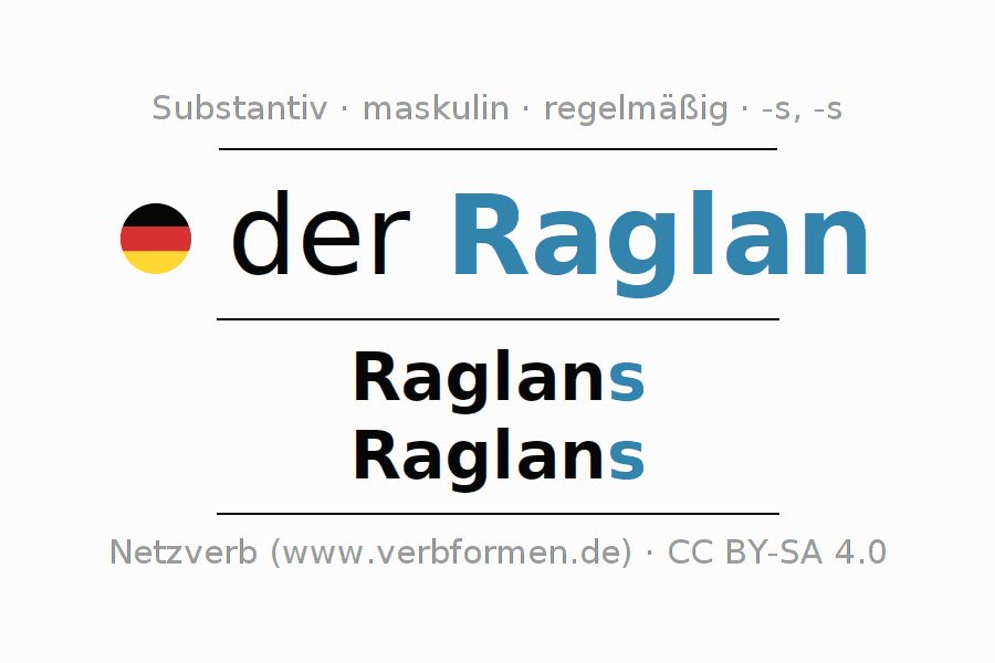 - Singular: der Raglan, des Raglans, dem Raglan, den Raglan