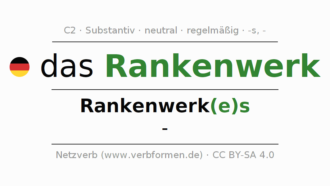 Zusammenfassung aller Deklinationsformen des Substantivs, Nomens bzw. Nennworts Rankenwerk in allen Fällen bzw. Kasus