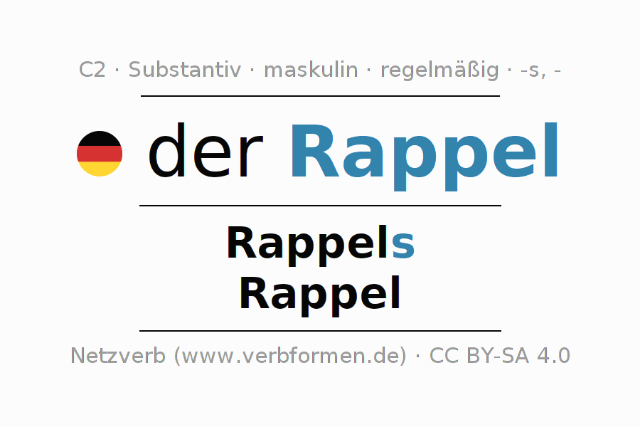 - Singular: der Rappel, des Rappels, dem Rappel, den Rappel