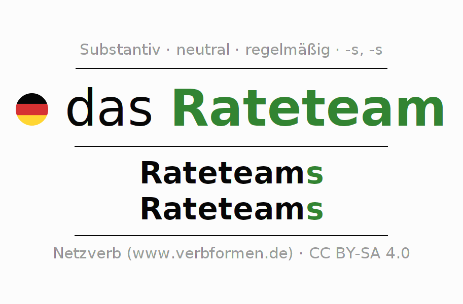 - Plural: die Rateteams, der Rateteams, den Rateteams, die Rateteams