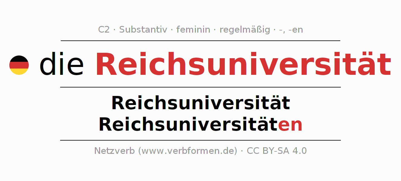 - Singular: die Reichsuniversität, der Reichsuniversität, der Reichsuniversität, die Reichsuniversität