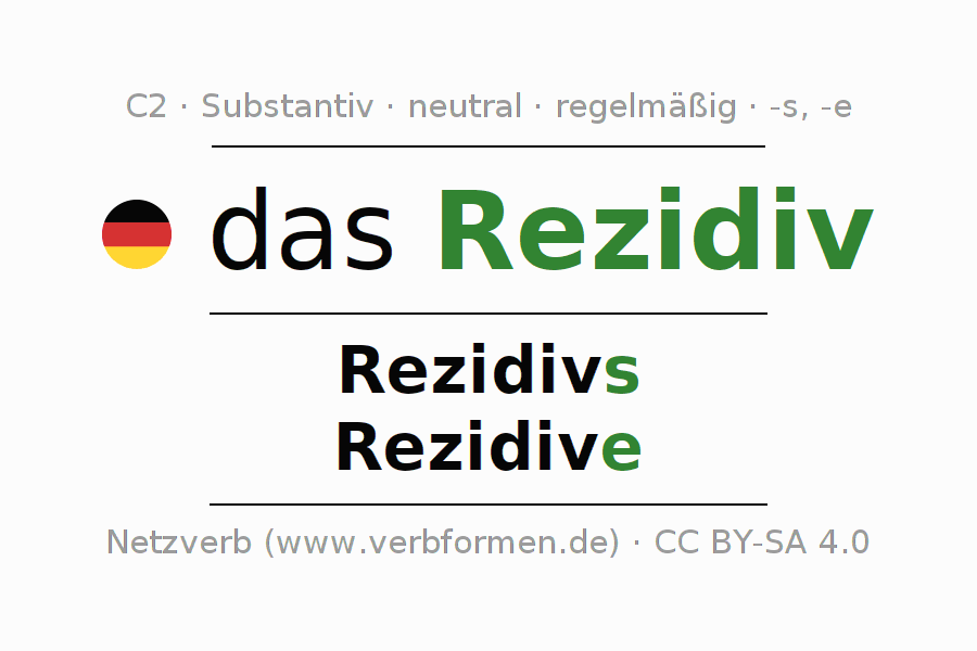 - Plural: die Rezidive, der Rezidive, den Rezidiven, die Rezidive