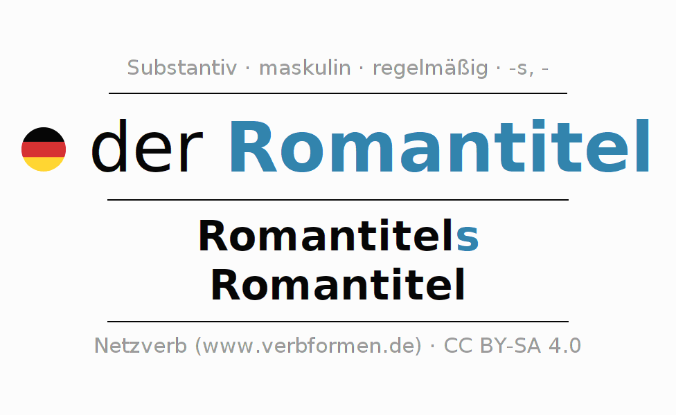 - Singular: der Romantitel, des Romantitels, dem Romantitel, den Romantitel