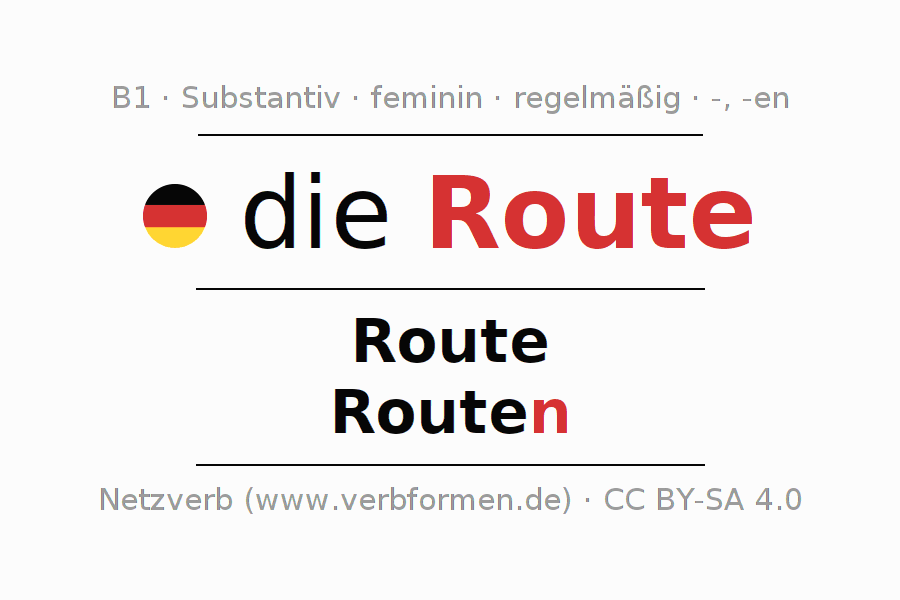 - Plural: die Routen, der Routen, den Routen, die Routen