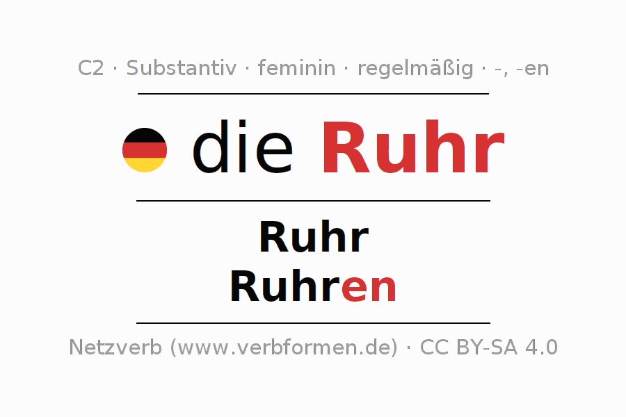 - Singular: die Ruhr, der Ruhr, der Ruhr, die Ruhr