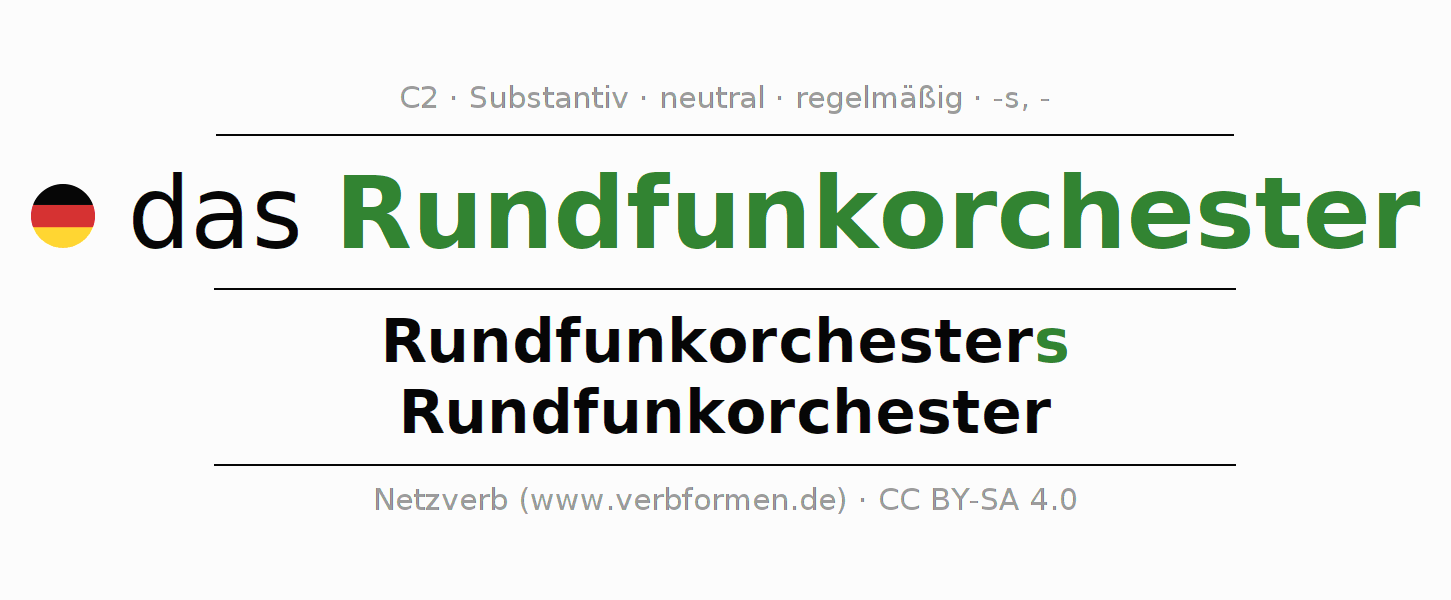 - Singular: das Rundfunkorchester, des Rundfunkorchesters, dem Rundfunkorchester, das Rundfunkorchester