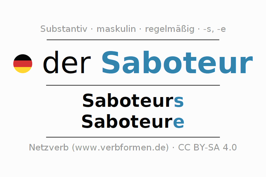- Singular: der Saboteur, des Saboteurs, dem Saboteur, den Saboteur