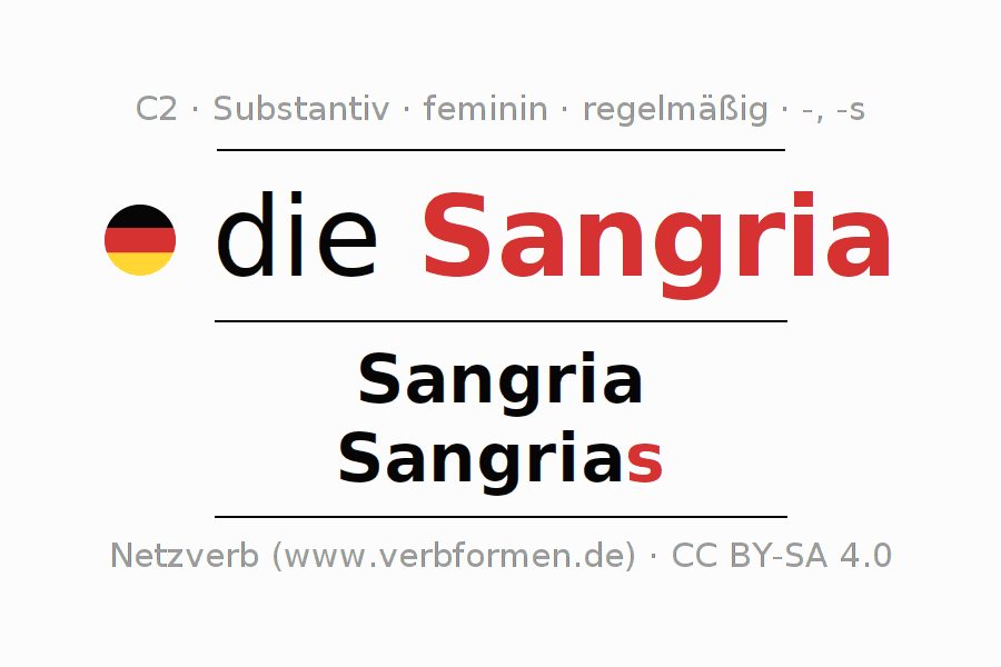 - Singular: die Sangria, der Sangria, der Sangria, die Sangria