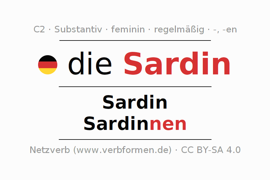 - Plural: die Sardinnen, der Sardinnen, den Sardinnen, die Sardinnen