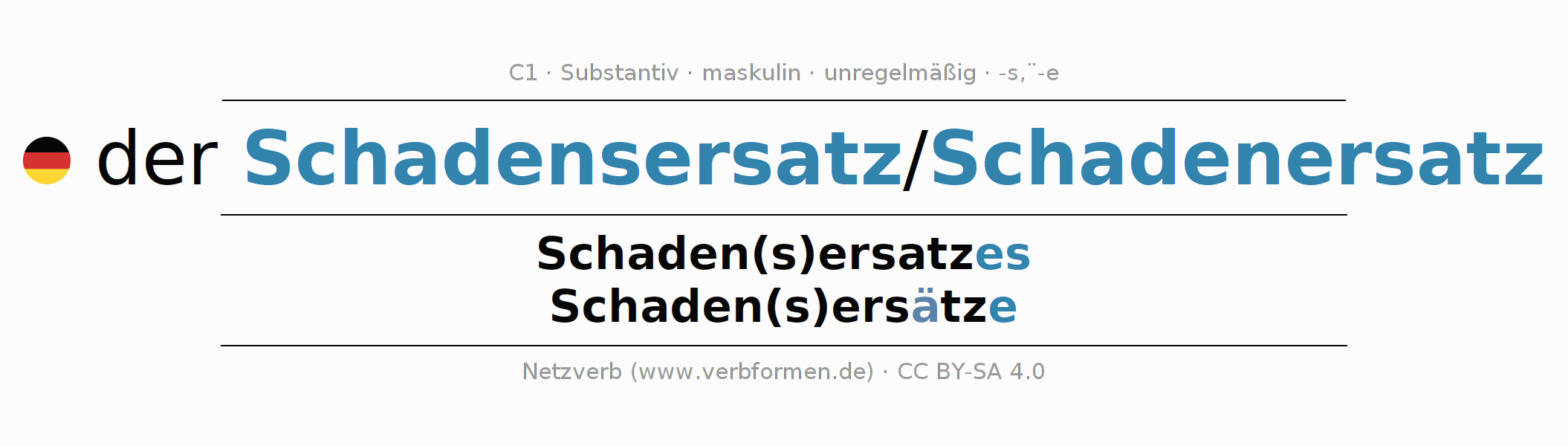 | Akk. | den Schaden(s)ersatz | die Schaden(s)ersätze |
