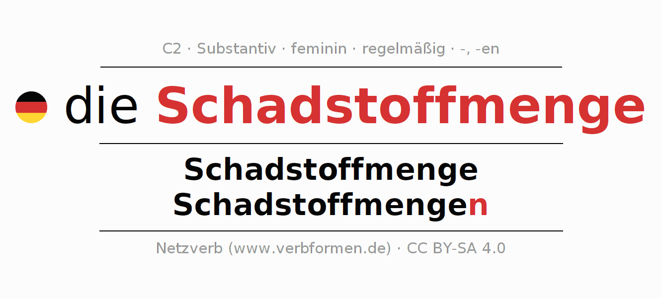 - Singular: die Schadstoffmenge, der Schadstoffmenge, der Schadstoffmenge, die Schadstoffmenge