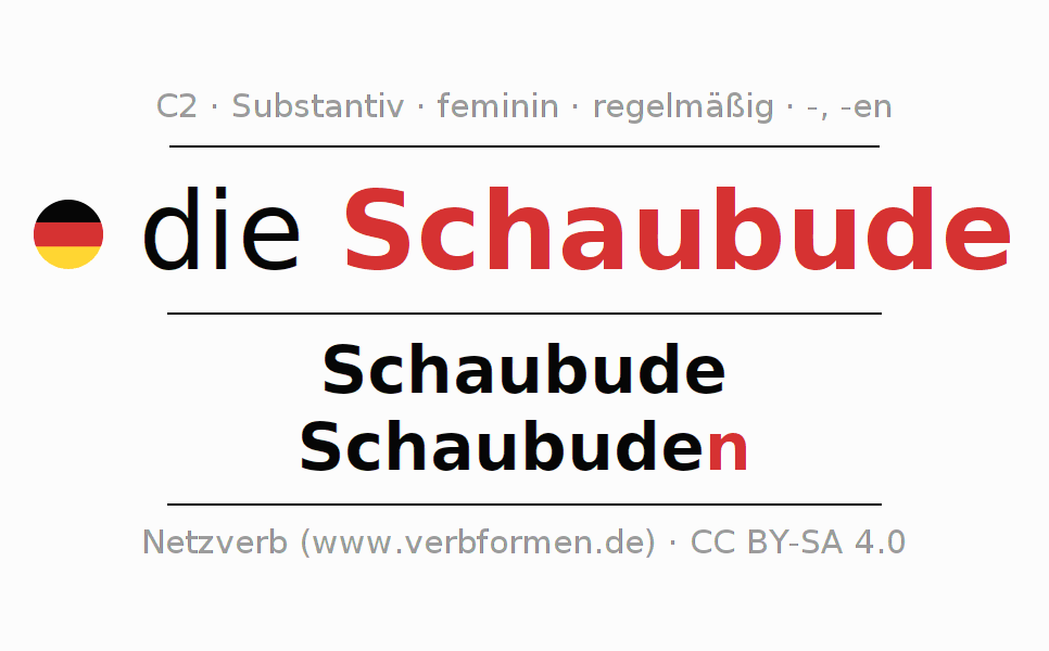 - Plural: die Schaubuden, der Schaubuden, den Schaubuden, die Schaubuden