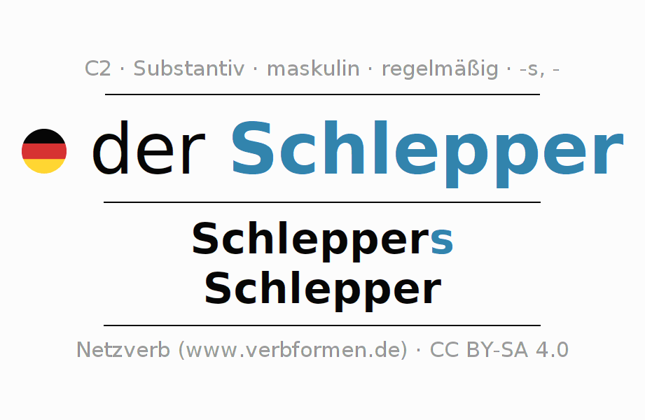 - Singular: der Schlepper, des Schleppers, dem Schlepper, den Schlepper