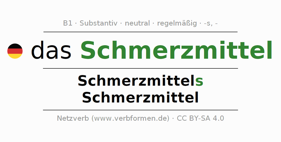 - Plural: die Schmerzmittel, der Schmerzmittel, den Schmerzmitteln, die Schmerzmittel