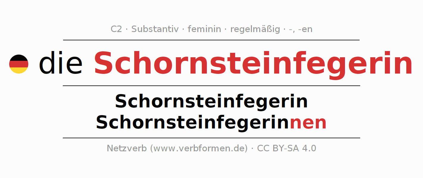 | Nom. | die Schornsteinfegerin | die Schornsteinfegerinnen |