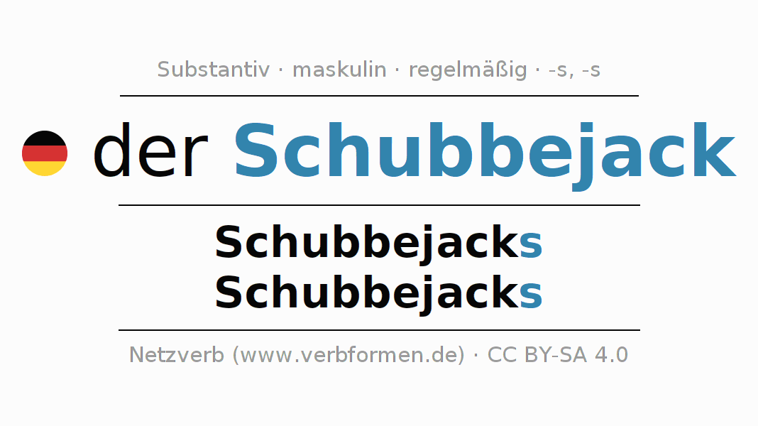 - Plural: die Schubbejacks, der Schubbejacks, den Schubbejacks, die Schubbejacks
