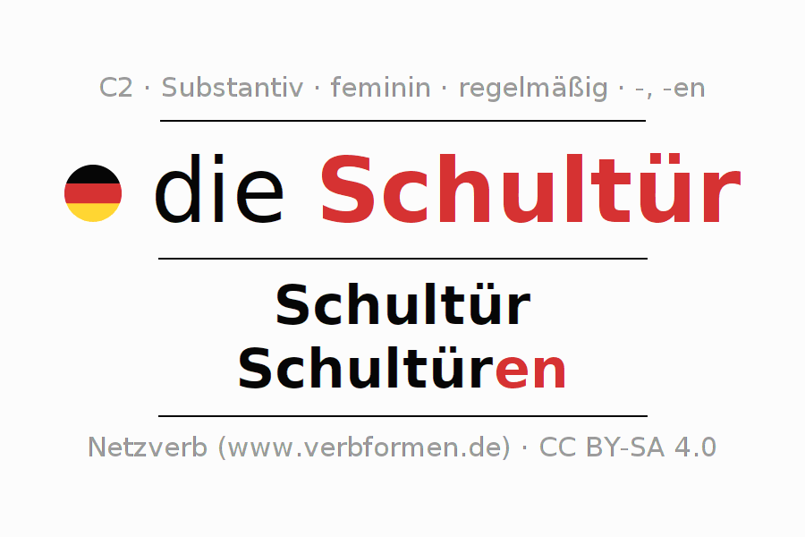 - Singular: die Schultür, der Schultür, der Schultür, die Schultür