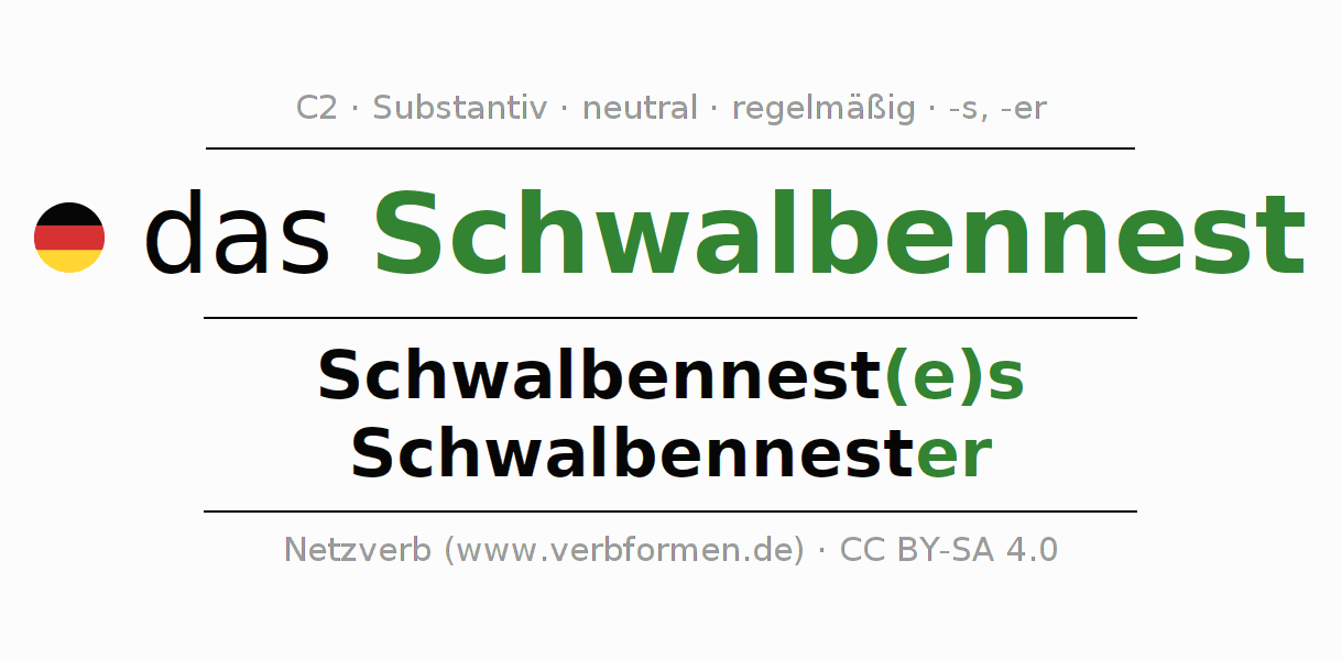 | Nom. | das Schwalbennest | die Schwalbennester |