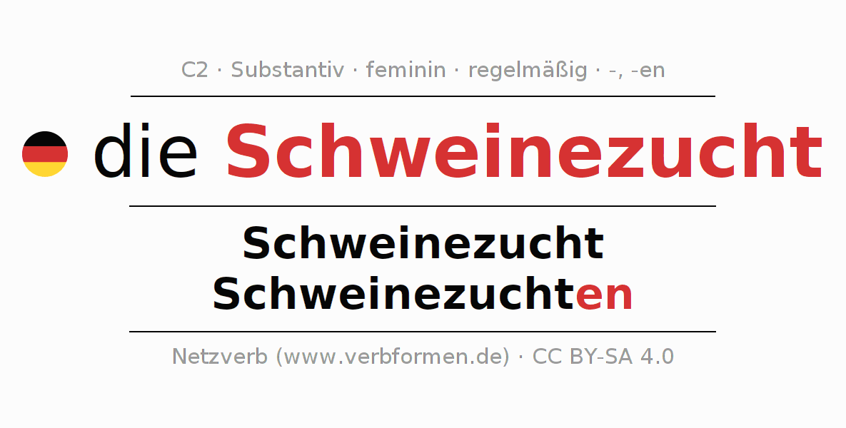 - Singular: die Schweinezucht, der Schweinezucht, der Schweinezucht, die Schweinezucht