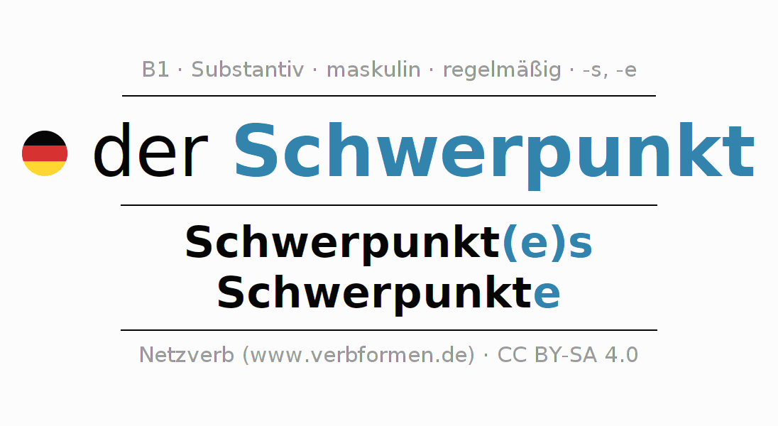 | Akk. | den Schwerpunkt | die Schwerpunkte |