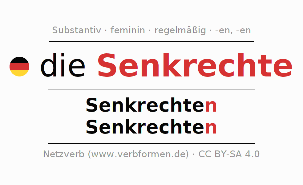 - Plural: die Senkrechten, der Senkrechten, den Senkrechten, die Senkrechten