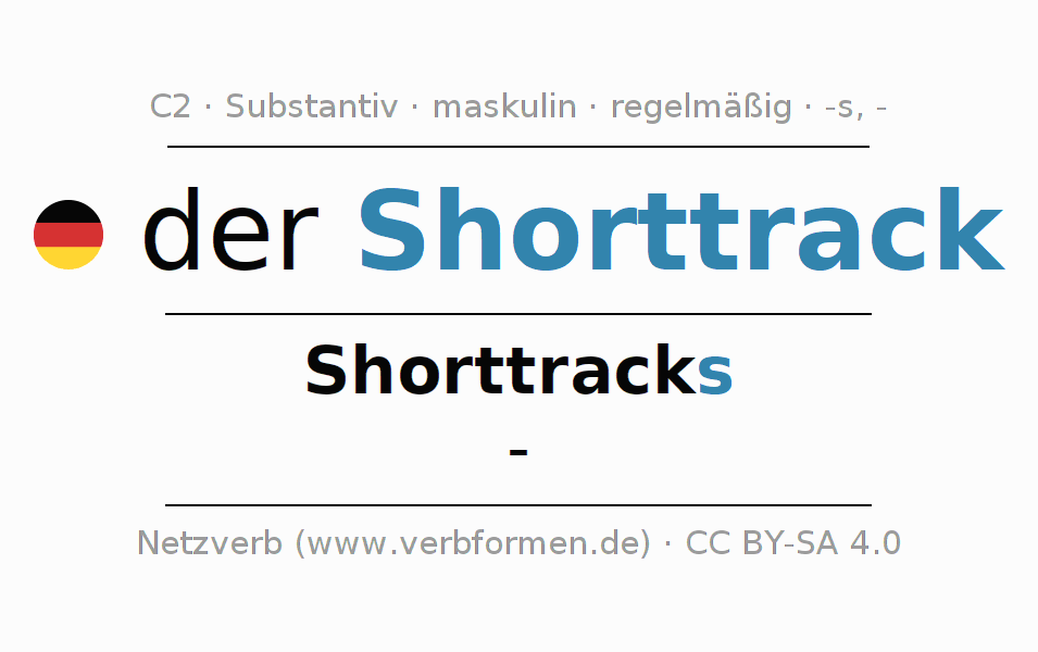 - Singular: der Shorttrack, des Shorttracks, dem Shorttrack, den Shorttrack