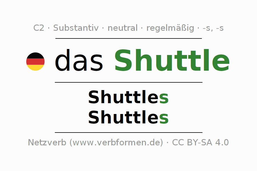 - Plural: die Shuttles, der Shuttles, den Shuttles, die Shuttles