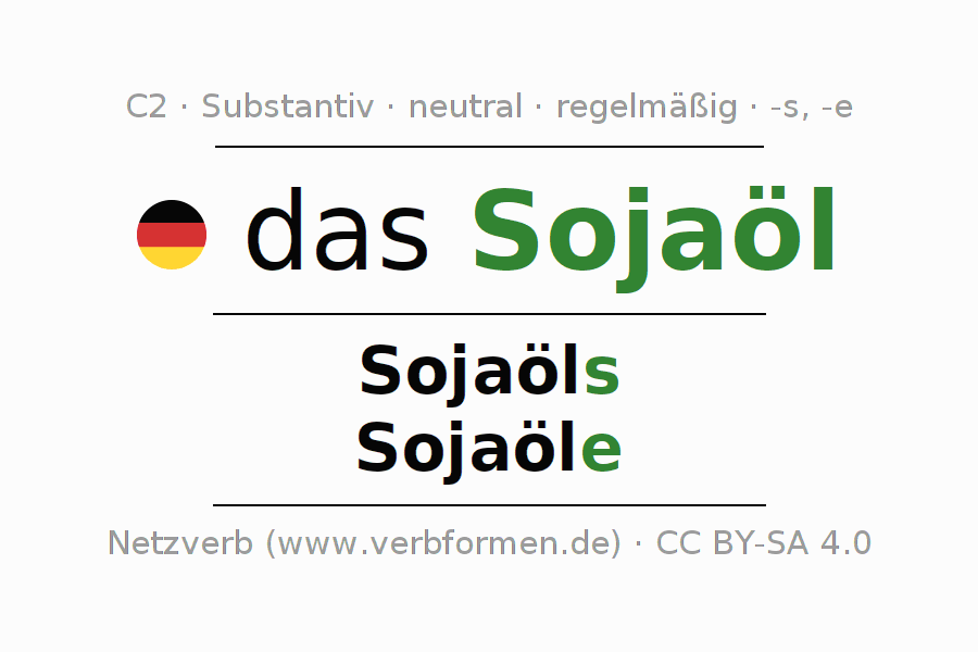 - Singular: das Sojaöl, des Sojaöls, dem Sojaöl, das Sojaöl