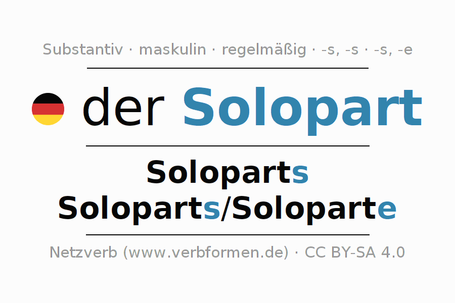 - Singular: der Solopart, des Soloparts, dem Solopart, den Solopart