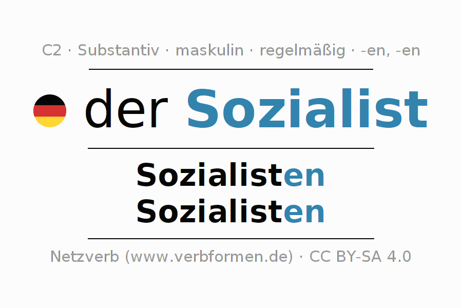 - Plural: die Sozialisten, der Sozialisten, den Sozialisten, die Sozialisten