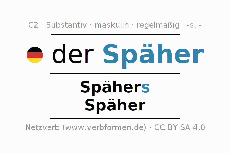 - Singular: der Späher, des Spähers, dem Späher, den Späher