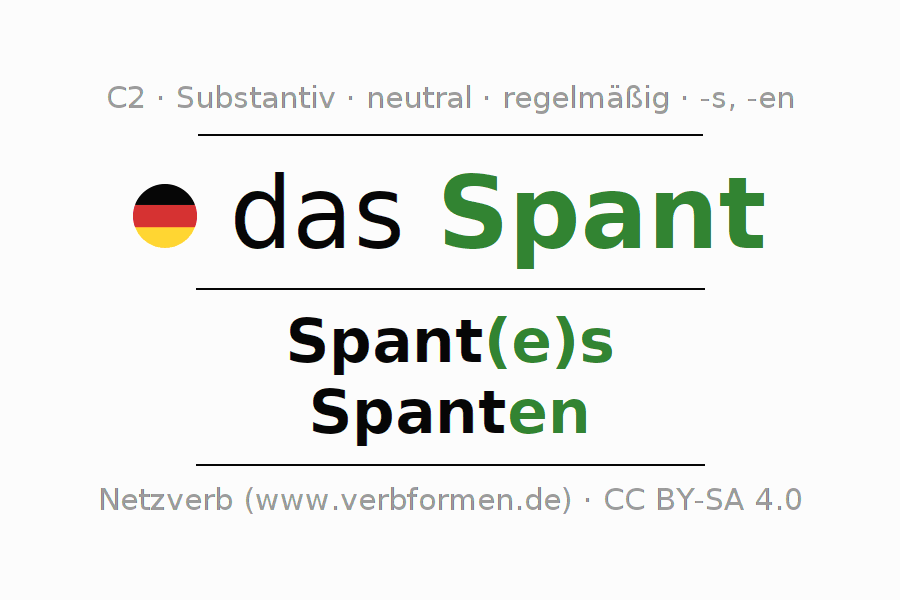 - Plural: die Spanten, der Spanten, den Spanten, die Spanten