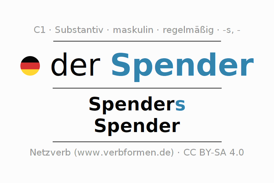 - Singular: der Spender, des Spenders, dem Spender, den Spender