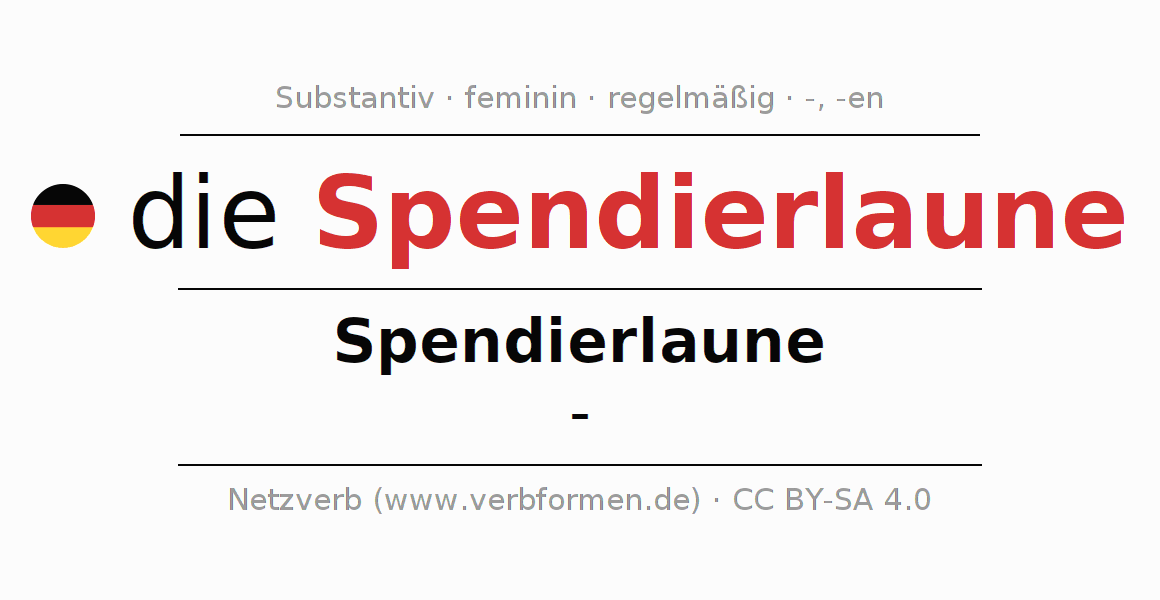 - Singular: die Spendierlaune, der Spendierlaune, der Spendierlaune, die Spendierlaune