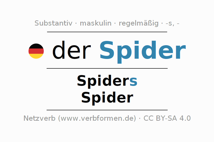 - Singular: der Spider, des Spiders, dem Spider, den Spider