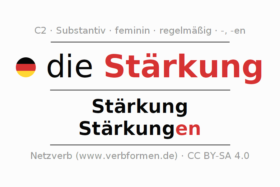 - Singular: die Stärkung, der Stärkung, der Stärkung, die Stärkung