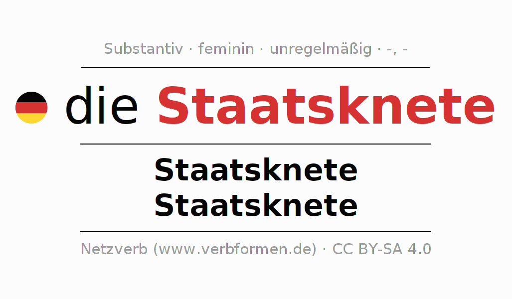 - Singular: die Staatsknete, der Staatsknete, der Staatsknete, die Staatsknete