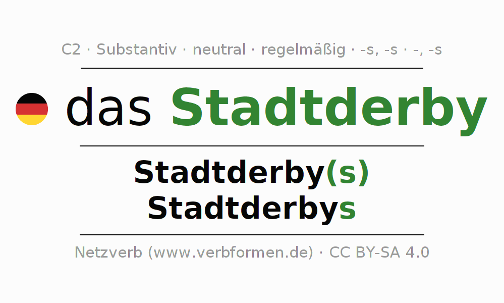 - Singular: das Stadtderby, des Stadtderby(s), dem Stadtderby, das Stadtderby