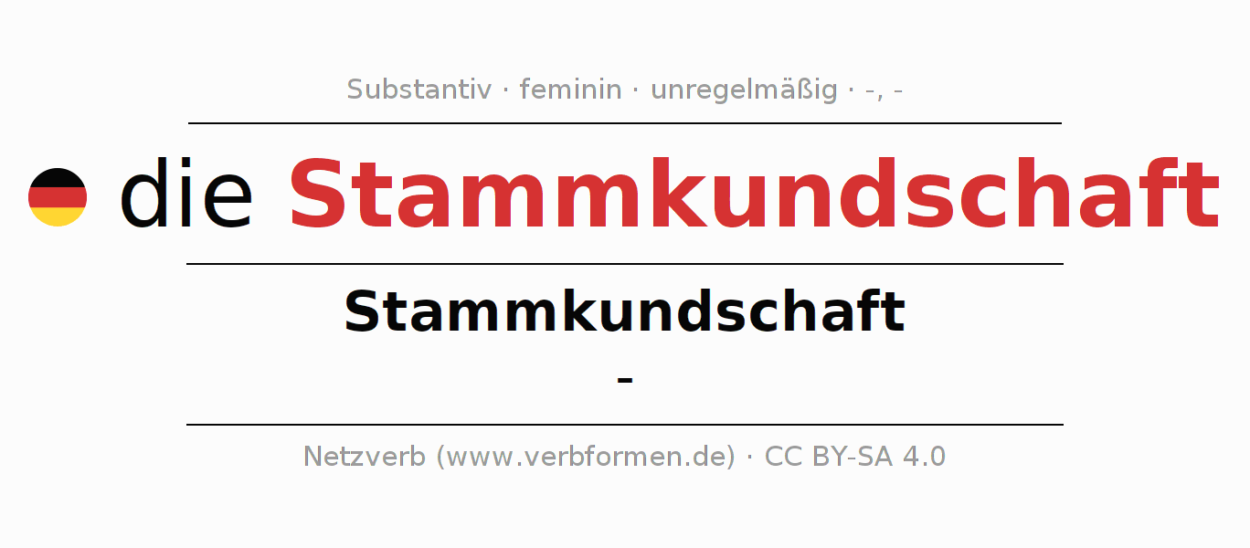 - Singular: die Stammkundschaft, der Stammkundschaft, der Stammkundschaft, die Stammkundschaft