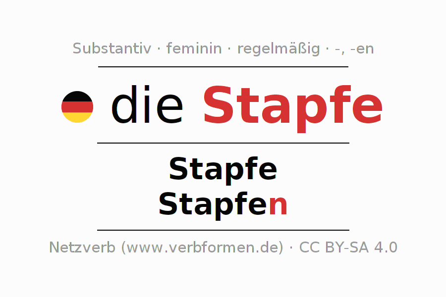 - Singular: die Stapfe, der Stapfe, der Stapfe, die Stapfe