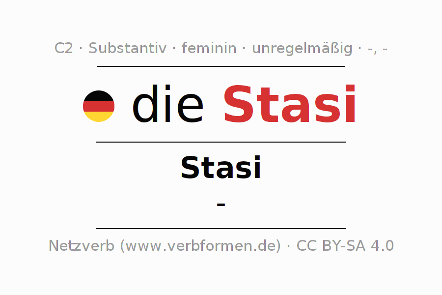 - Singular: die Stasi, der Stasi, der Stasi, die Stasi