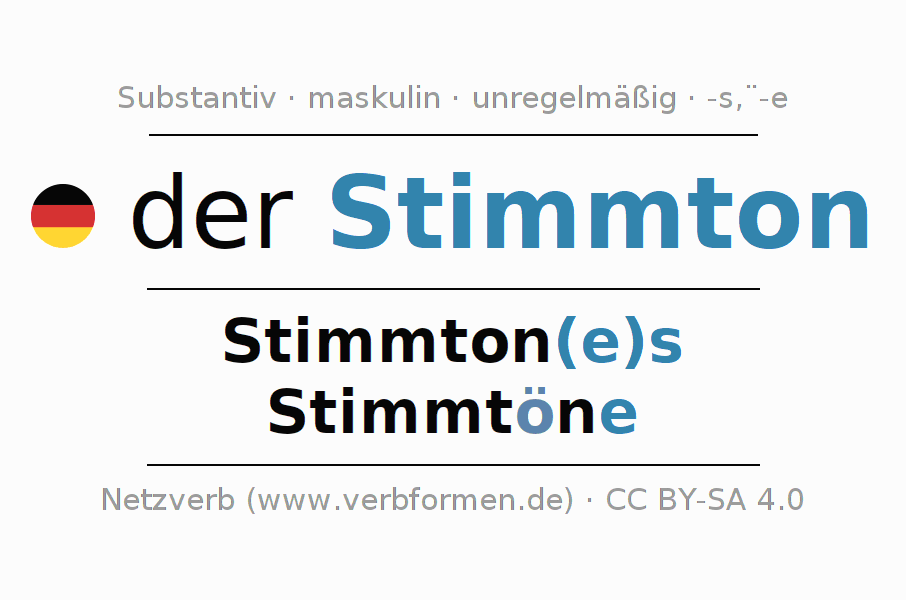 - Singular: der Stimmton, des Stimmton(e)s, dem Stimmton(e), den Stimmton