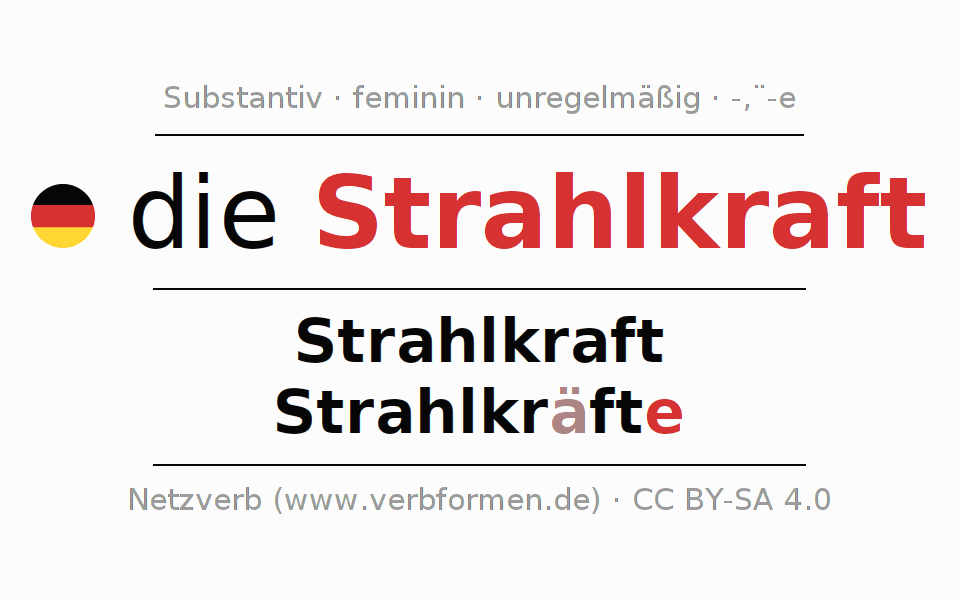 - Singular: die Strahlkraft, der Strahlkraft, der Strahlkraft, die Strahlkraft