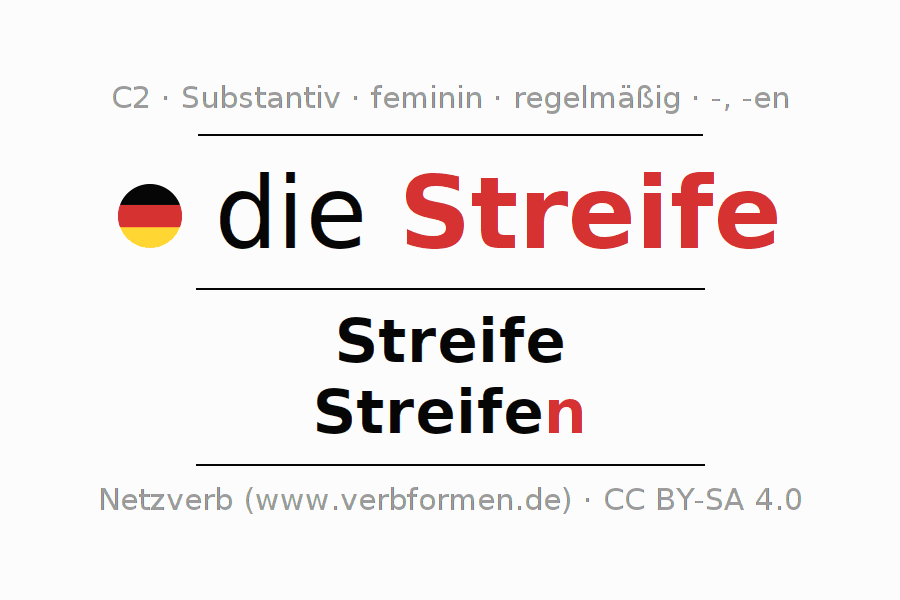 - Plural: die Streifen, der Streifen, den Streifen, die Streifen