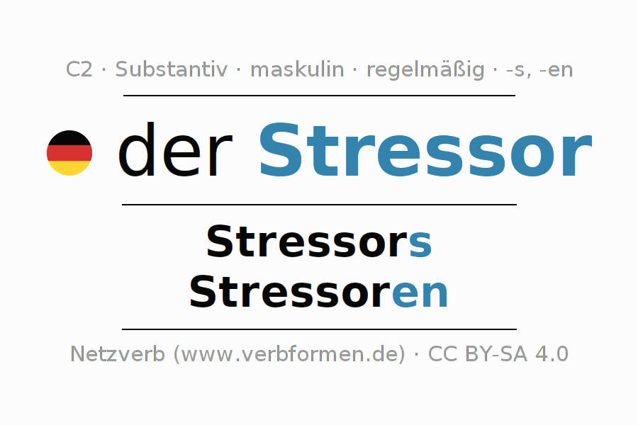 - Singular: der Stressor, des Stressors, dem Stressor, den Stressor